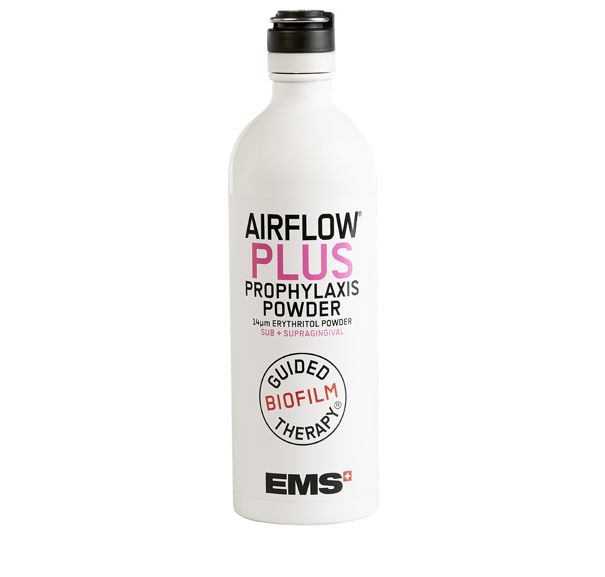 La polvere AIRFLOW PLUS® , con una granulometria di 14 μm, è una polvere ad alta tecnologia che rimuove il biofilm e il tartaro di recente formazione in modo minimamente invasivo da tutti i tipi di superfici , sopra e sottogengivali.