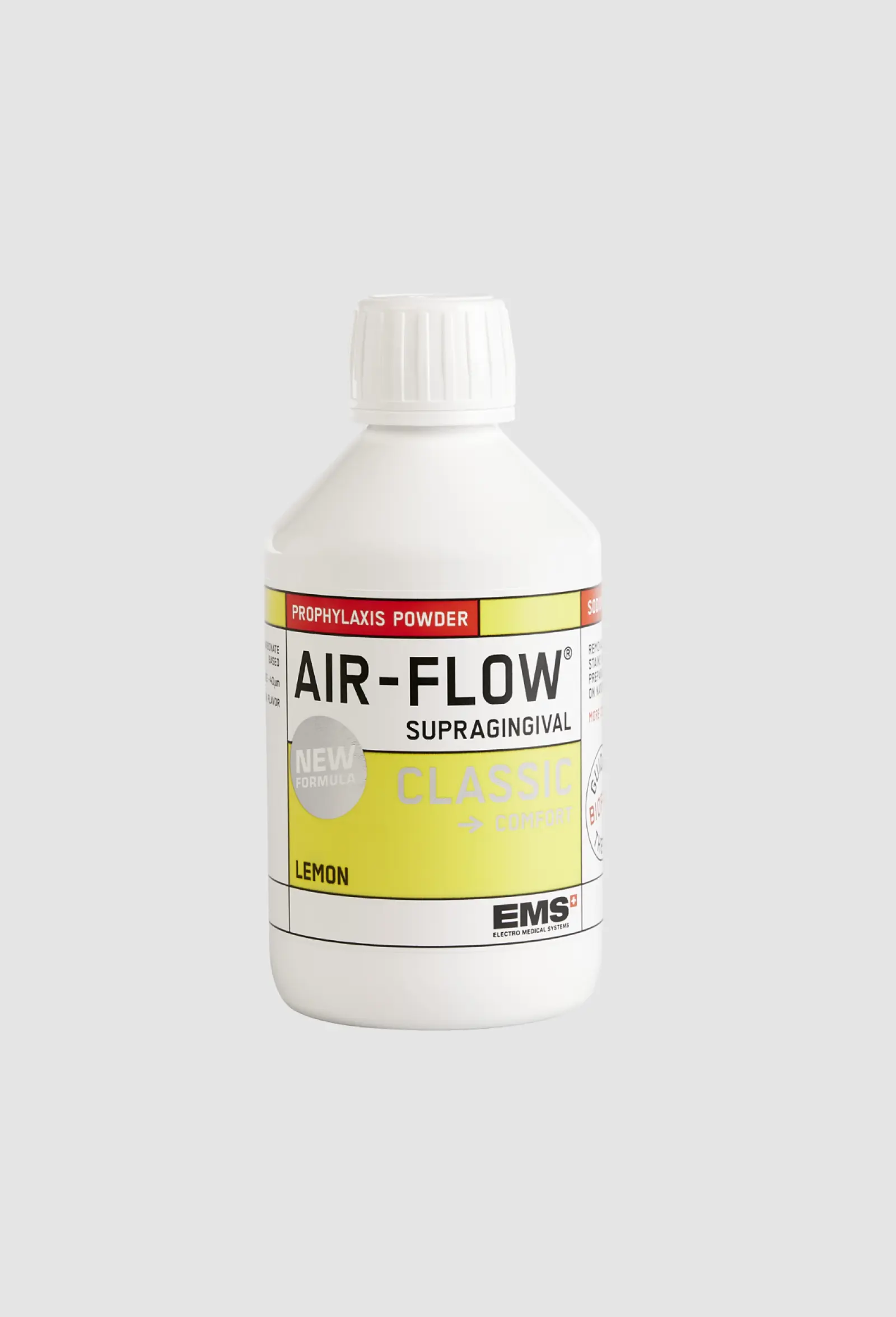 AIRFLOW® CLASSIC COMFORT è una polvere di bicarbonato di sodio con una granulometria di 40 µm. È gradevole, gustosa ed efficace nella rimozione di biofilm, macchie e pigmentazioni intense. La profilassi è diventata ancora più gustosa: provatela, i pazienti la adorano!