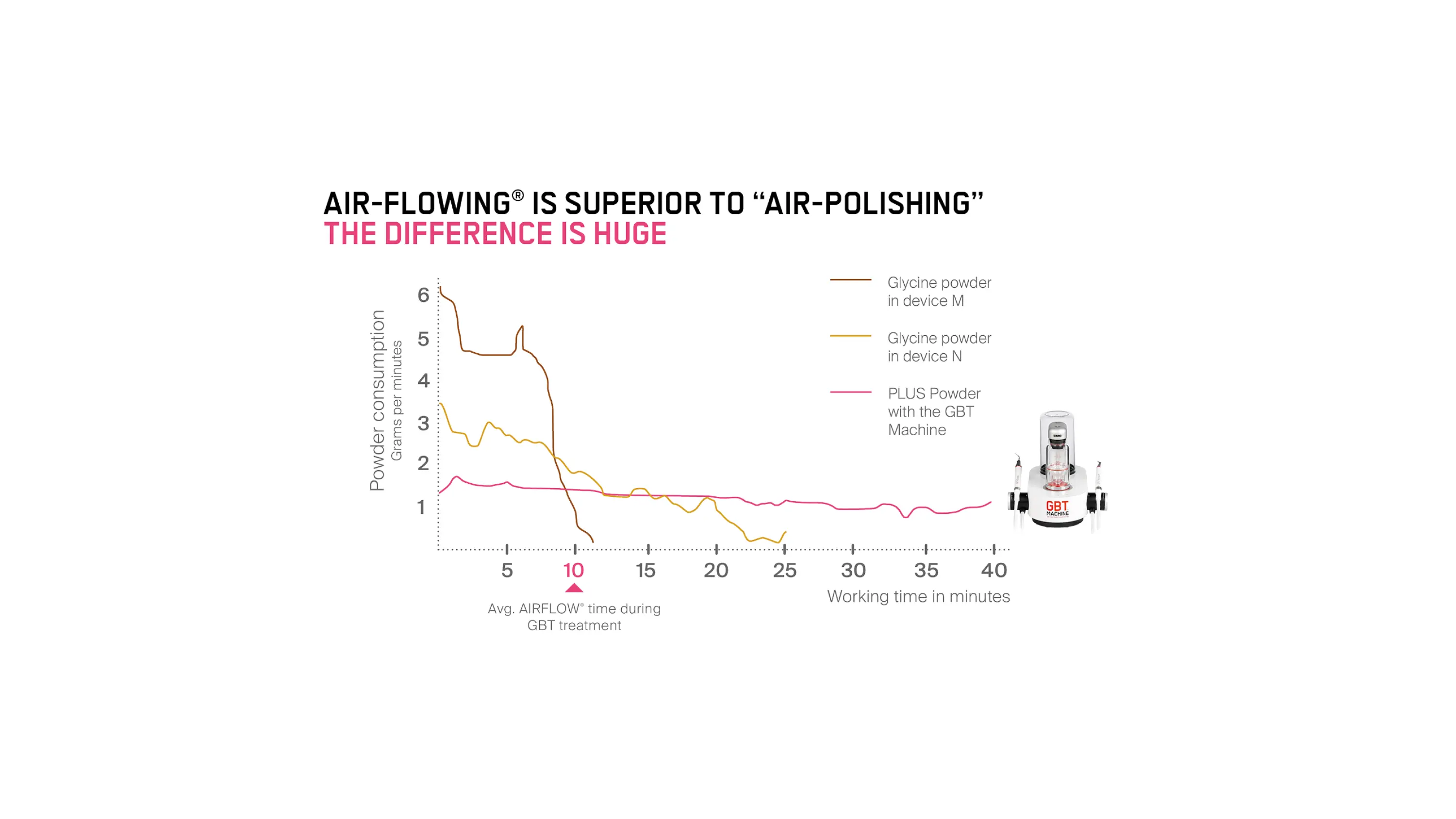 AIR-FLOWING® è la sinergia tra i dispositivi AFPM o GBT Machine, i manipoli AIRFLOW e PERIOFLOW e la polvere PLUS a base di eritritolo (14µ) versatile e altamente confortevole.