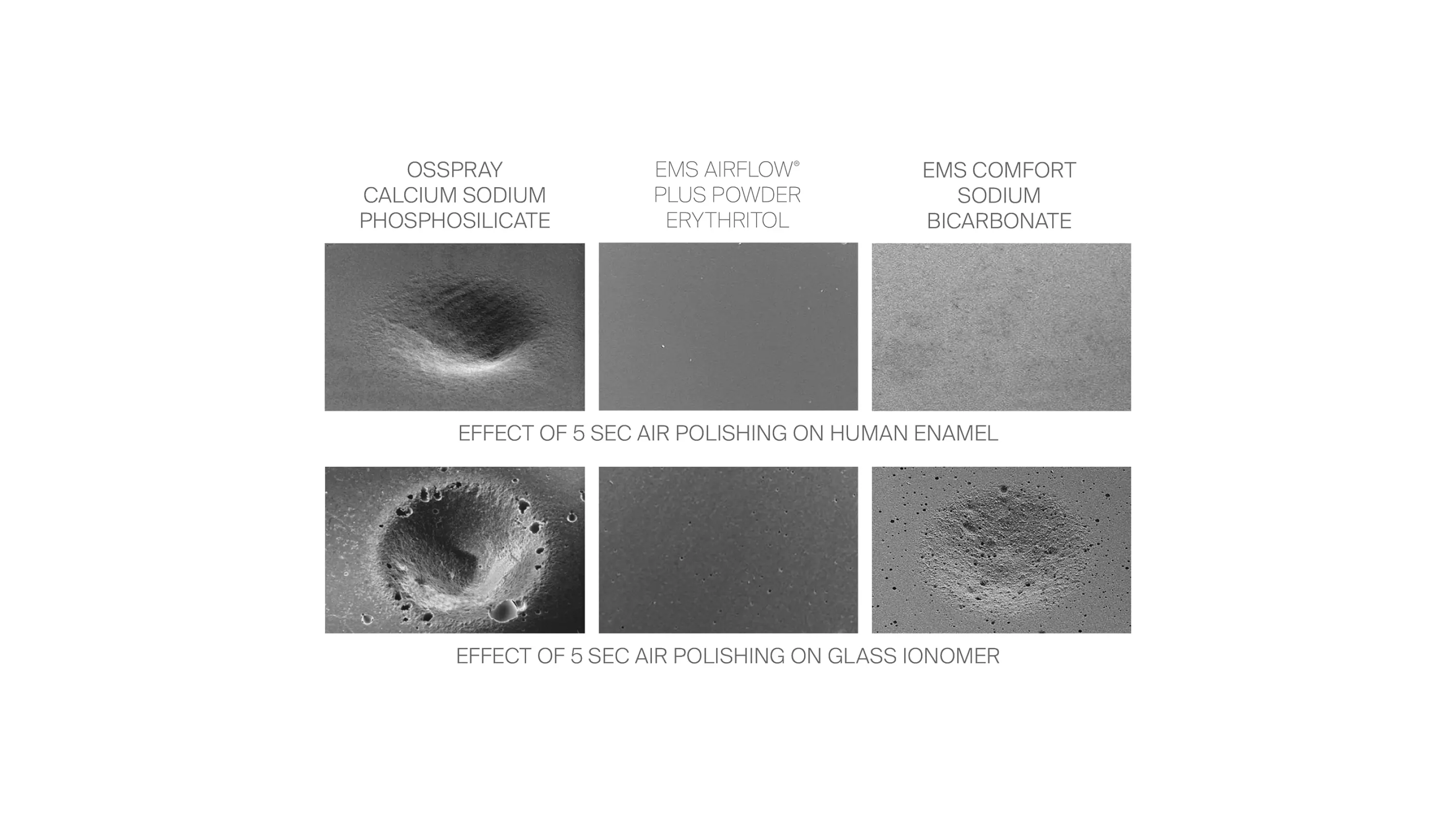 Lo studio condotto dalla Prof.ssa Caren Barnes et al ha dimostrato che solo le polveri a base di bicarbonato di sodio, glicina ed eritritolo sono sicure per l'uso sullo smalto.