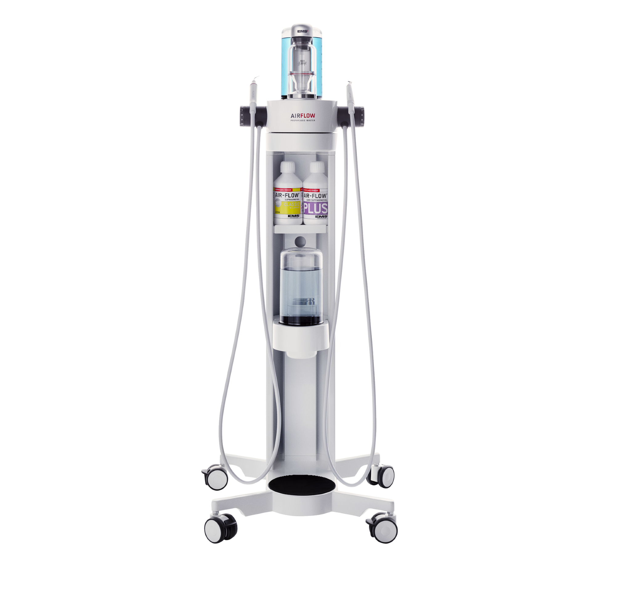 La nuova AIRFLOW® Station trasforma AIRFLOW® Prophylaxis Master e AIRFLOW® One in una postazione di profilassi ultra-compatta, senza necessità di allacciamento idrico. AIRFLOW® STATION+ è dotata di un sistema di alimentazione idrica autonomo e indipendente con movimento a 360° che permette una maggiore manovrabilità ed è ideale per uno stoccaggio semplice in presenza di spazi ristretti.